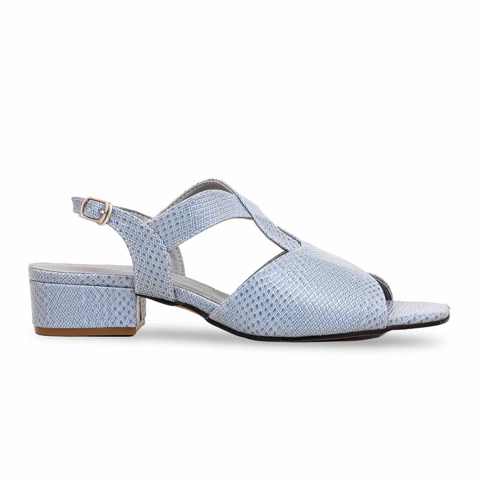 Sandales à talons pour femmes formelles bleues avec bride à la cheville à bout carré FR5359 Style de plate-forme en matière supérieure en fourrure