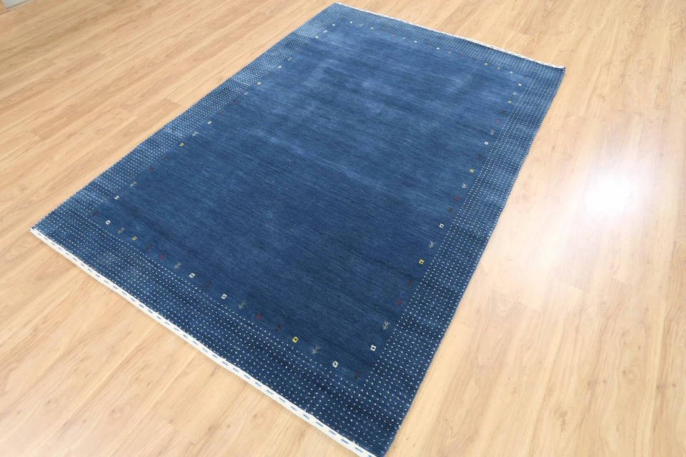 Tapis bleu Gabbeh en laine marine fait main, tapis tribal à bordures, pour salon, chambre à coucher, décoration moderne minimaliste pour la maison