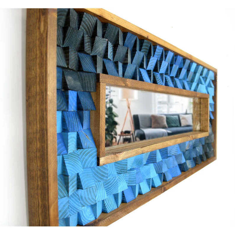 Miroir en bois récupéré dégradé bleu mosaïque décoration murale lumineuse 4x3.5x3.6 pieds