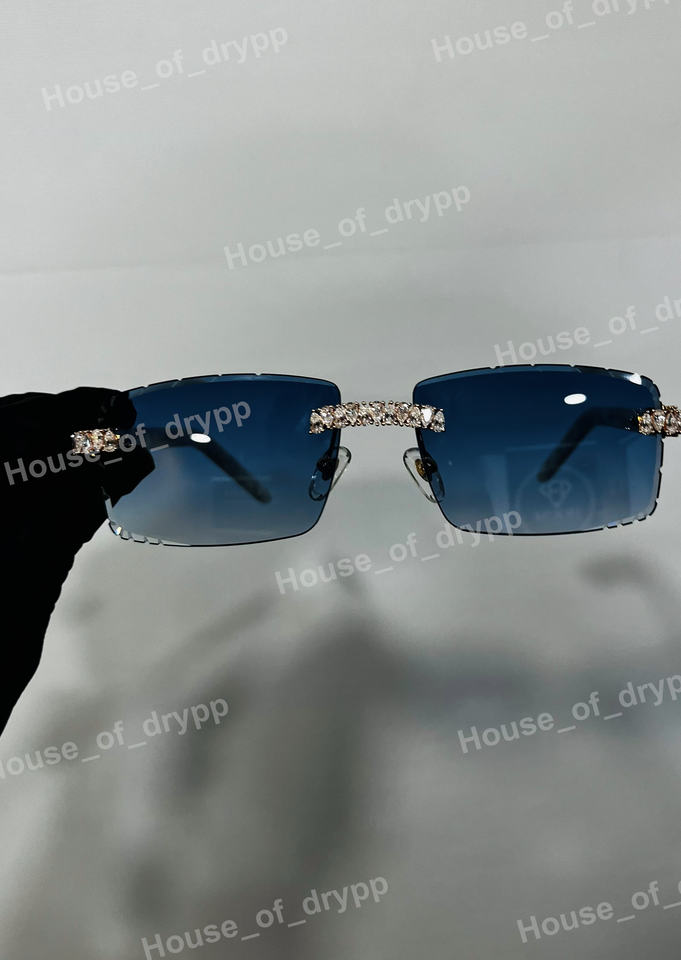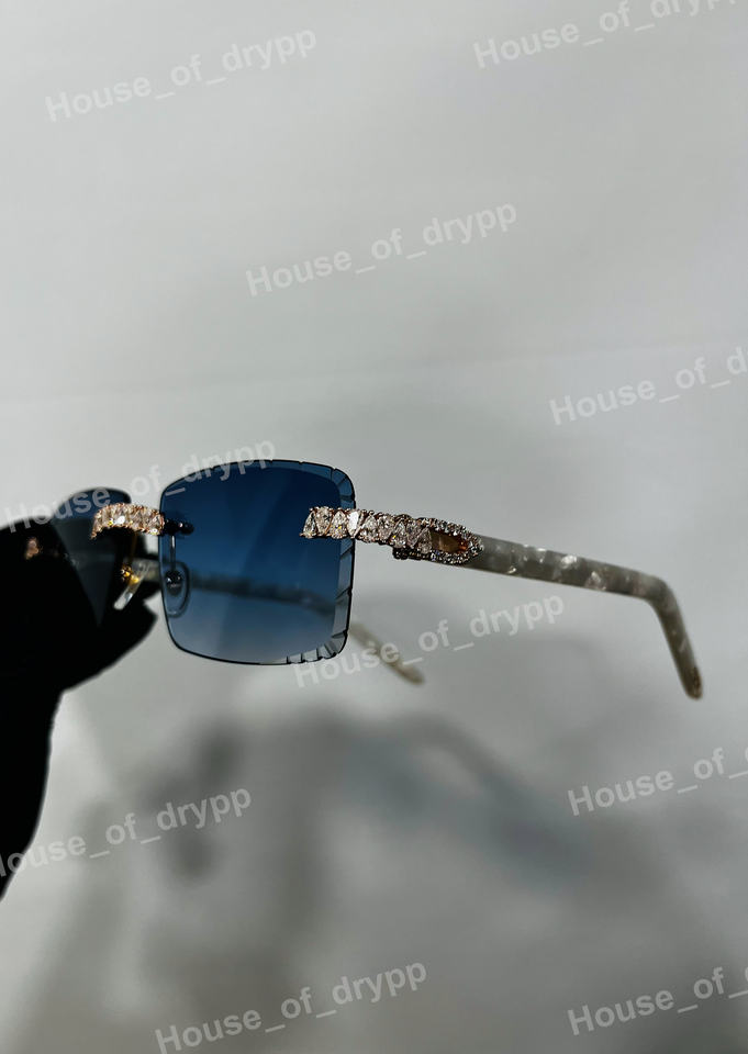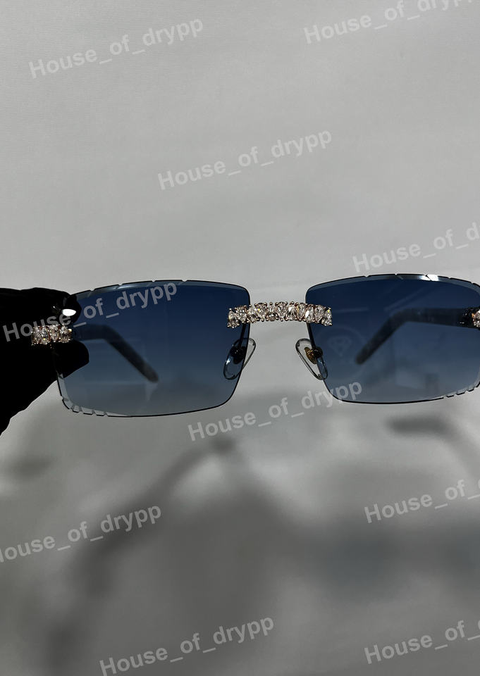 Lunettes de soleil photochromiques légères sans monture dégradé bleu style diamant Moissanite glacé Hip Hop Bling sans cadre unisexe