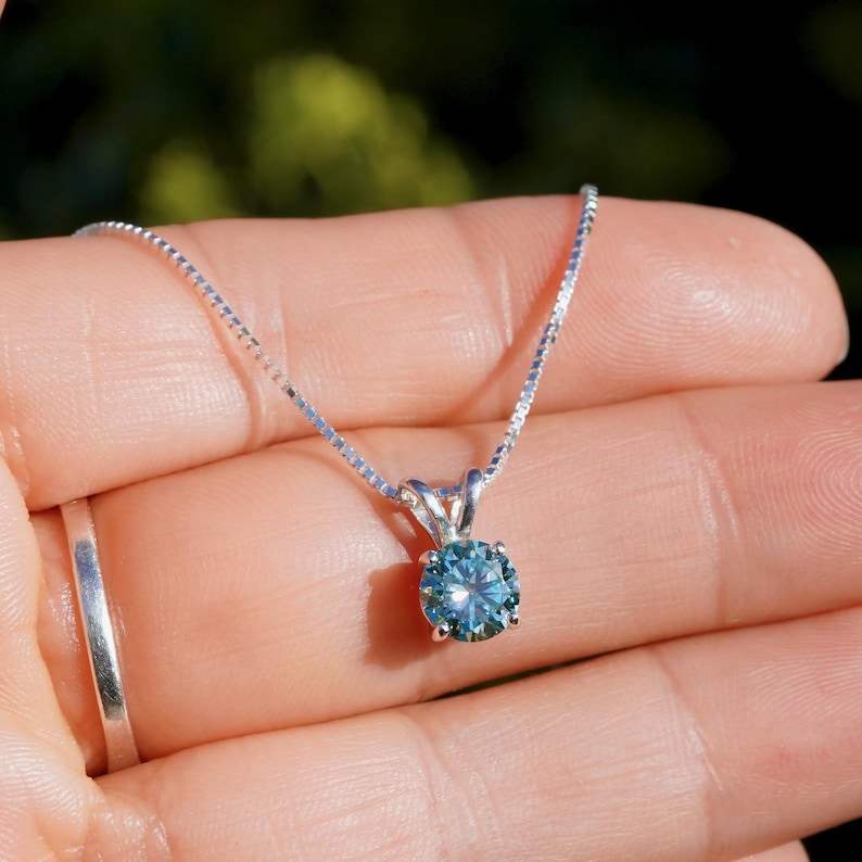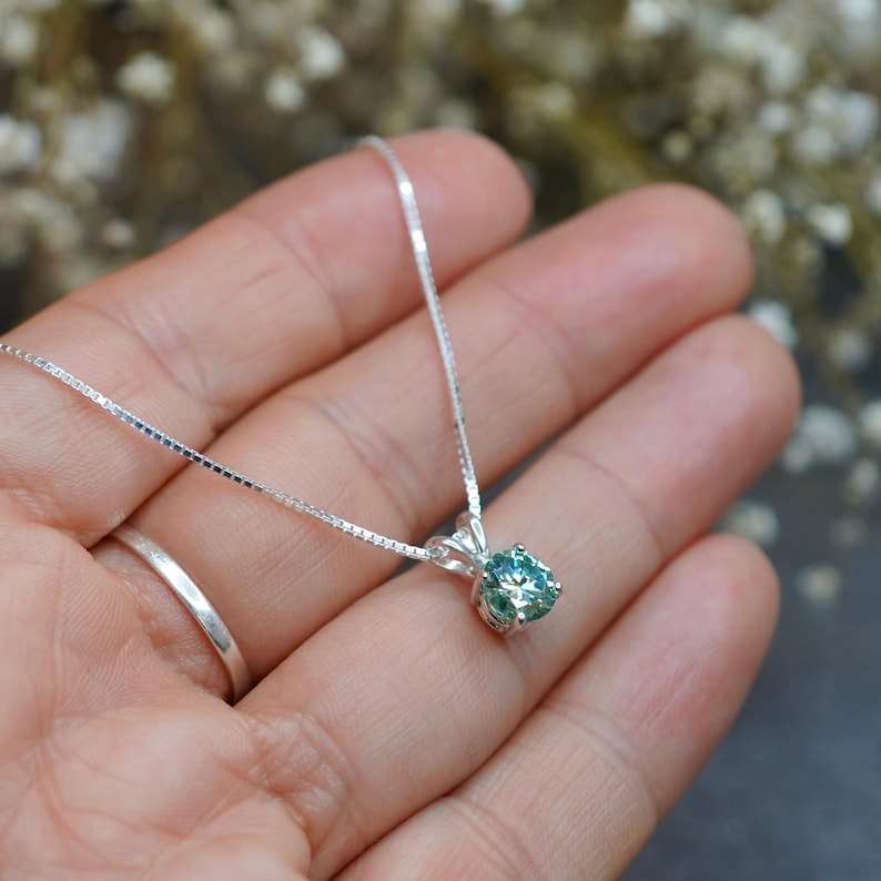 Keyword:Blue Green Moissanite Solitaire Pendant Necklace