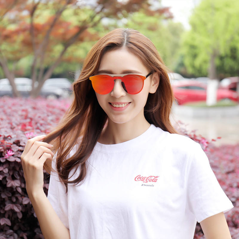 Lunettes de soleil bleues à demi-cadre pour femmes, unisexes, verres en PC, protection UV à 100%, style tendance, taille adulte