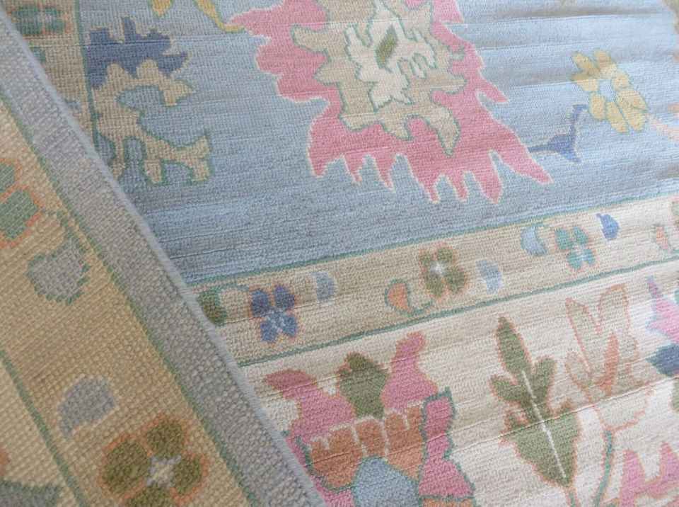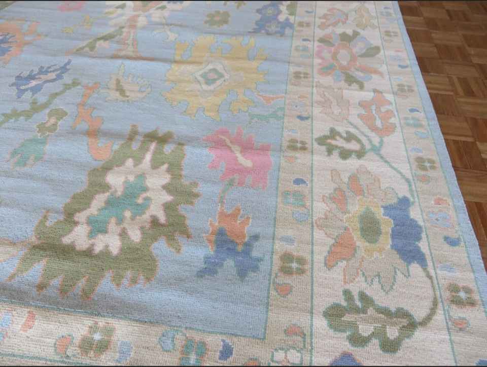 Tapis en laine Oushak noué à la main bleu 9x12-10x14 coton motif abstrait pour la maison pépinière salon commande personnalisée