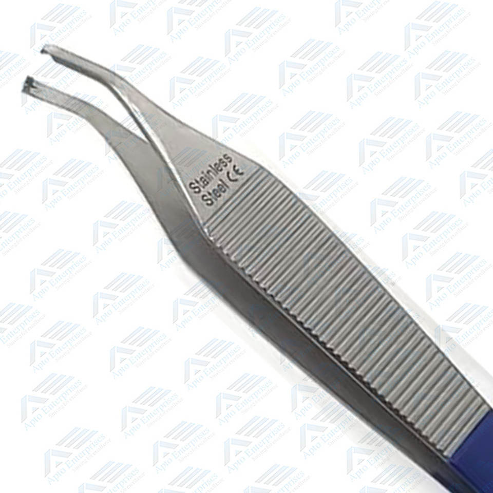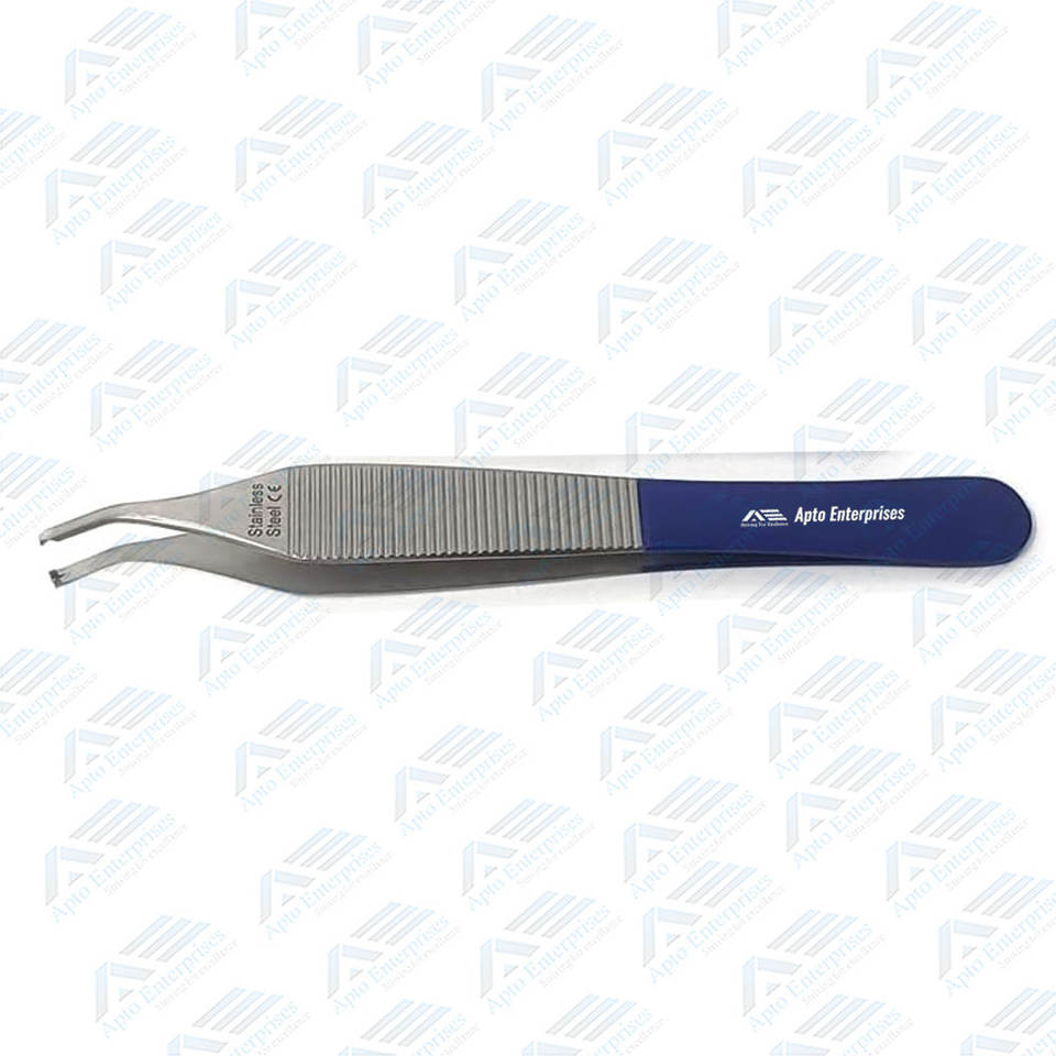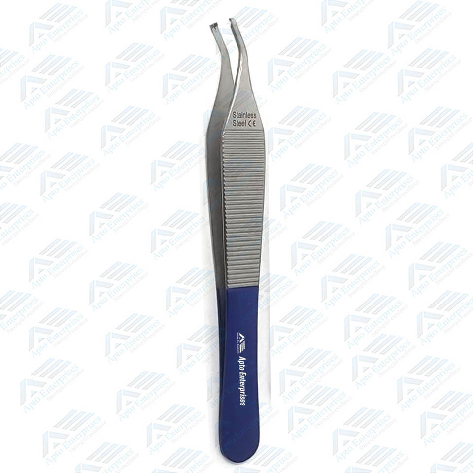 Pince Adson à manche bleu, à dents 1x2, instrument médical, pince à pansement marron, pince chirurgicale incurvée pour tissus de 4,75 po