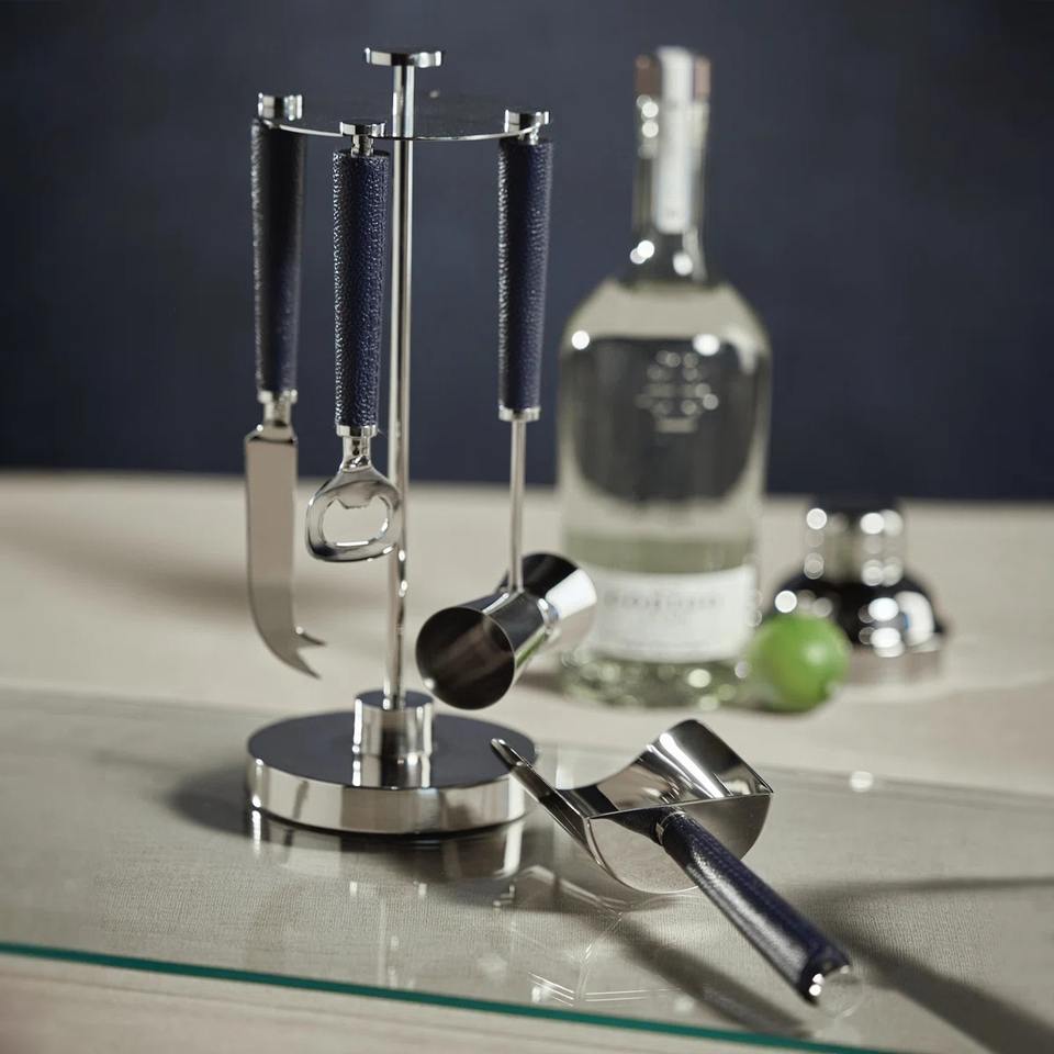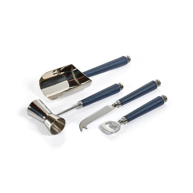 Ensemble d'outils de bar en acier inoxydable avec poignée bleue pour la mixologie professionnelle, les bars à domicile, les fêtes et le service de boissons de luxe, provenant d'Inde