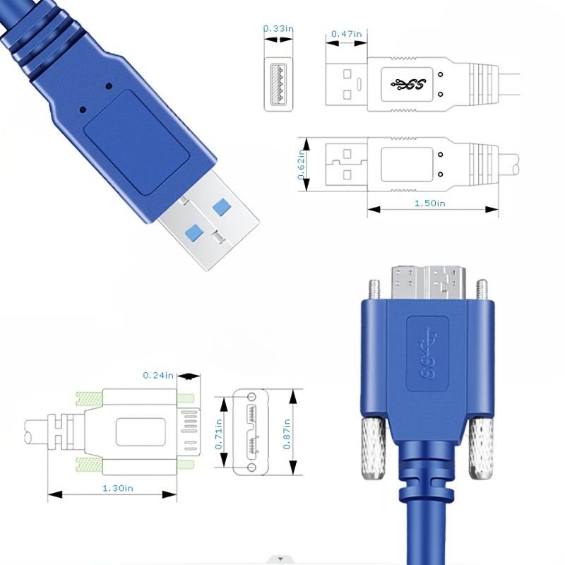 Câble de disque dur bleu USB 3.0 vers Micro B câble USB3 caméra de Vision Compatible USB 3.0 A/M vers Micro B/M avec câble de verrouillage à double vis