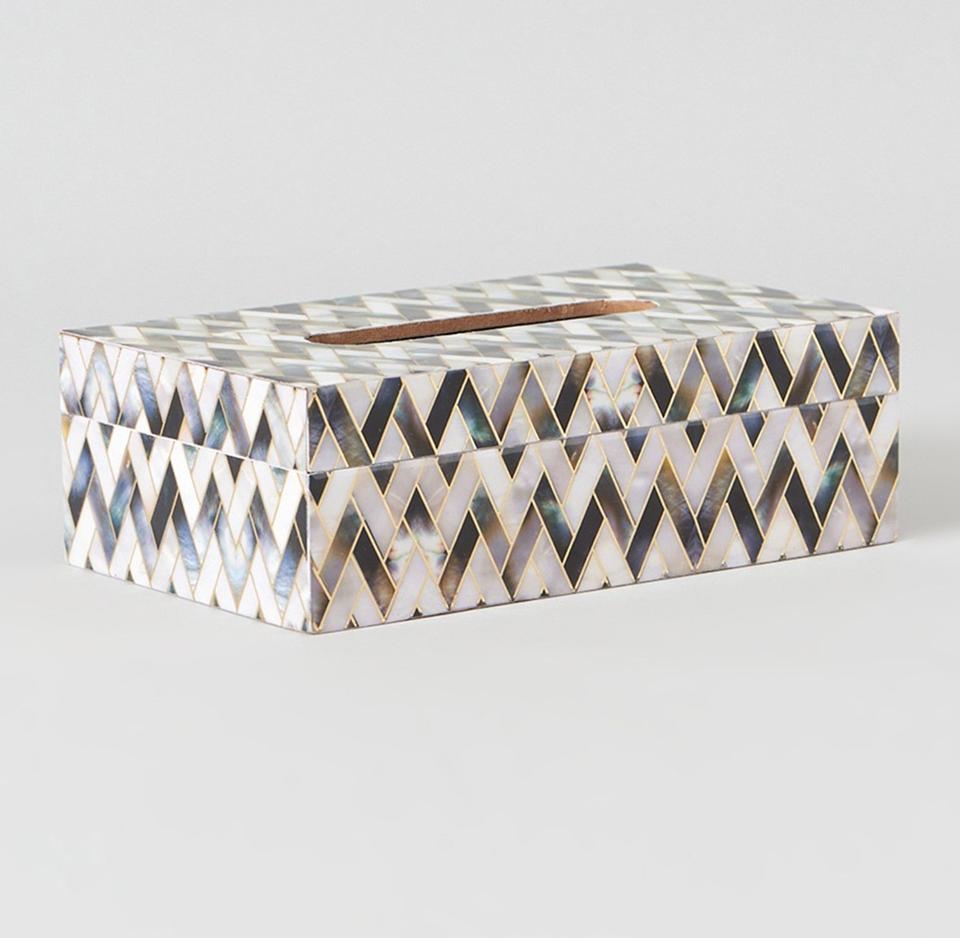 Récipient organisateur de serviettes bleu pour la maison et la cuisine avec boîte à mouchoirs carrée en incrustation de nacre pour les fêtes