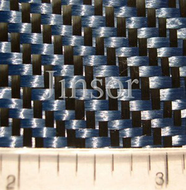 Blue Hybrid Aramid/Carbon Fiber Twill Woven Fabric 200gsm 190cm Width Jinsor JSCK0312T Car Industry Shoes Sporting Goods