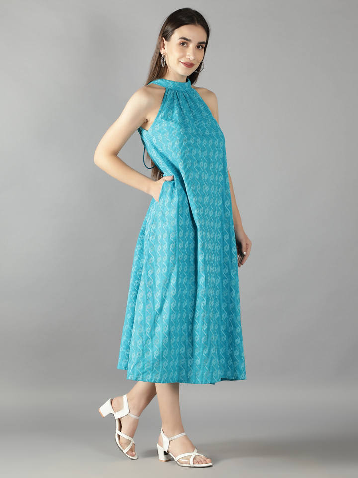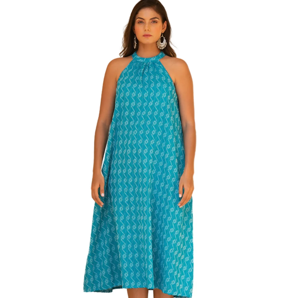 Nom du produit:Bleu Kantha Halter Neck Robe avec dos cou Tie Up
