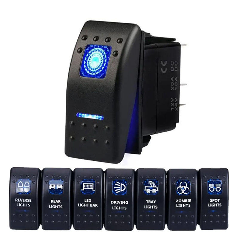 Interrupteur de commande de treuil à LED bleue 5 broches SPST 20Amp étanche à l'eau pour voiture camion UTV Moteur de treuil système 12V