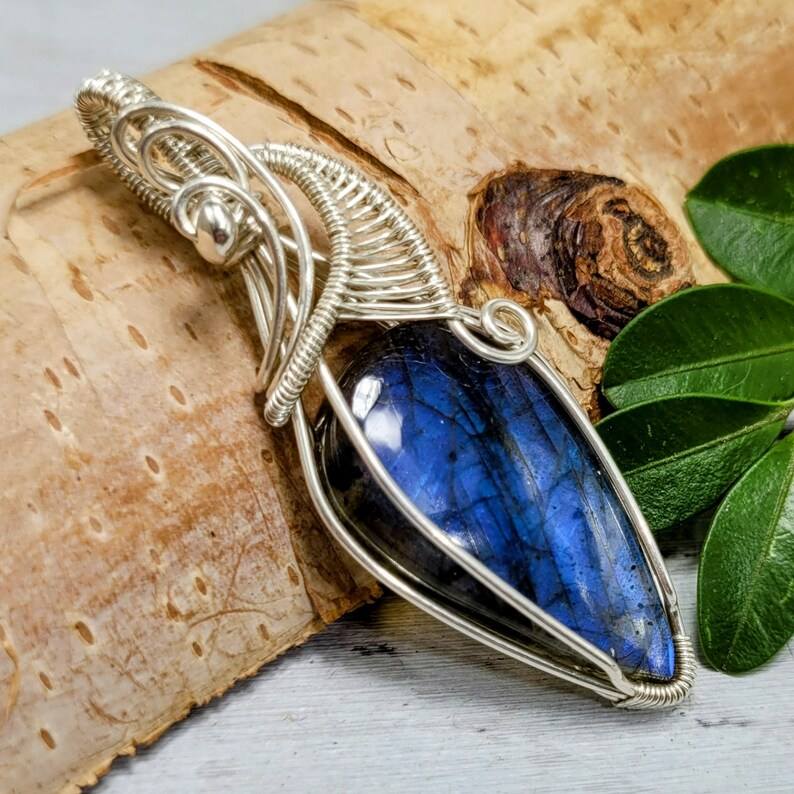 Pendentif en fil de Labradorite bleu fait à la main en argent Sterling 925 Unique Artisan bijoux cadeau pour les femmes