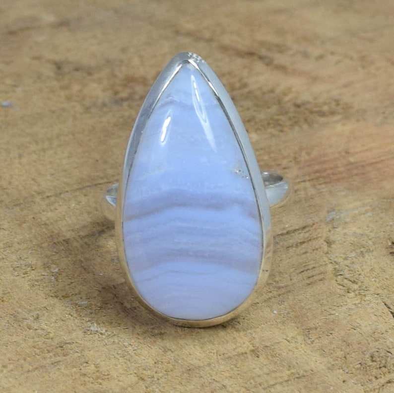 Bague en agate bleue en forme de poire, faite à la main, en argent sterling 925, bijoux élégants et uniques, cadeau pour femmes, bague réglable