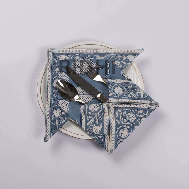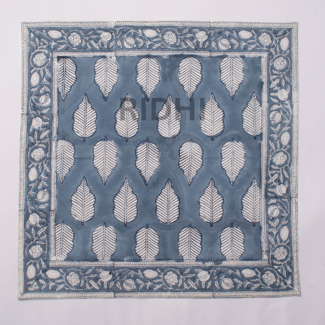 Serviettes en coton imprimées à la main motif feuilles bleues, réutilisables, pour dîner, mariage, hôtel et restaurant, vente en gros