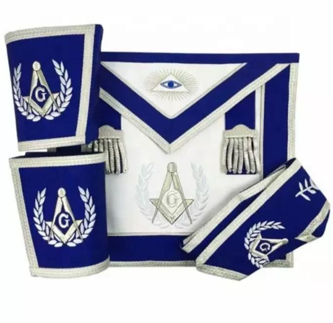 Ensemble d'articles de regalia maçonniques en cuir magnétique brodé pour Maître Maçon de Loge Bleue, fabriqué au Pakistan, avec collier, gants et manchettes