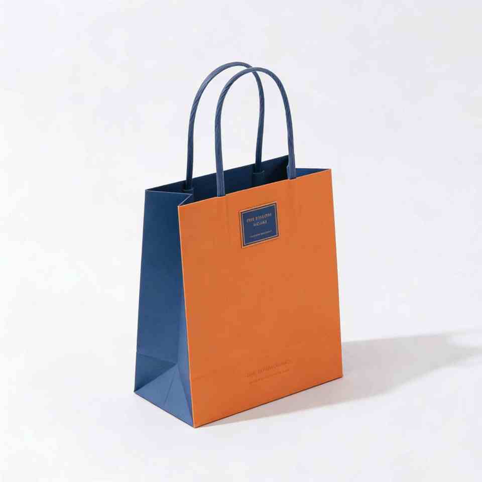 Boîte cadeau magnétique bleue avec bordure orange et sac en papier assorti pour les produits cosmétiques de soin de la peau de luxe, emballage de produits de cadeaux haut de gamme