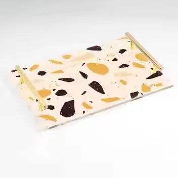 Plateau de service en marbre bleu avec couteaux à manches dorées, plateau rectangulaire pour apéritifs, plateau à charcuterie, ensemble cadeau