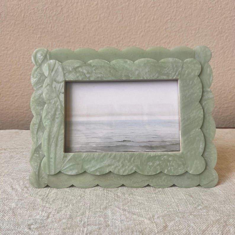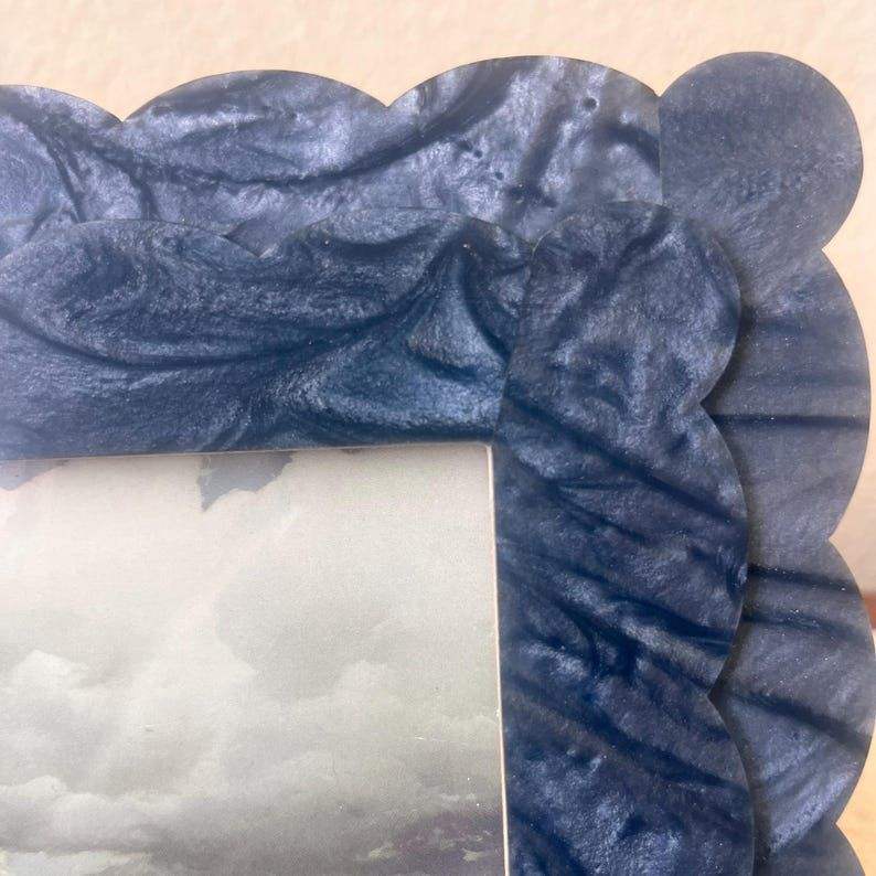 Cadre photo décoratif mural fait main en résine à texture de marbre bleu
