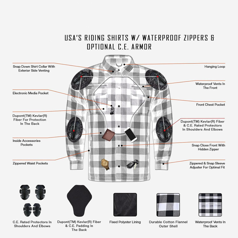 Product name:Custom Motorcycle Flannel Kevlar Shirts