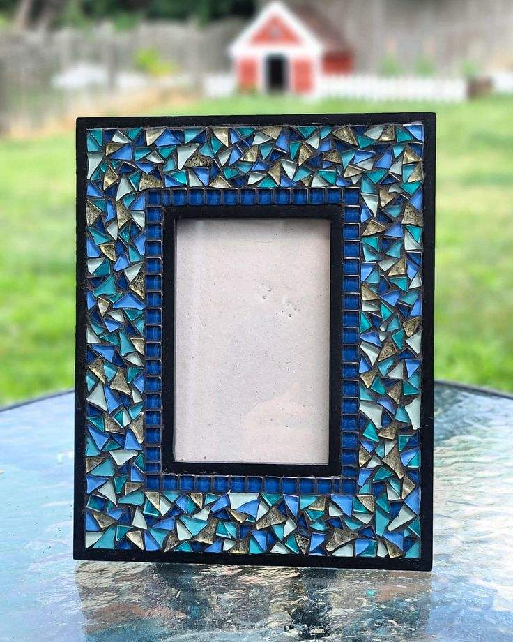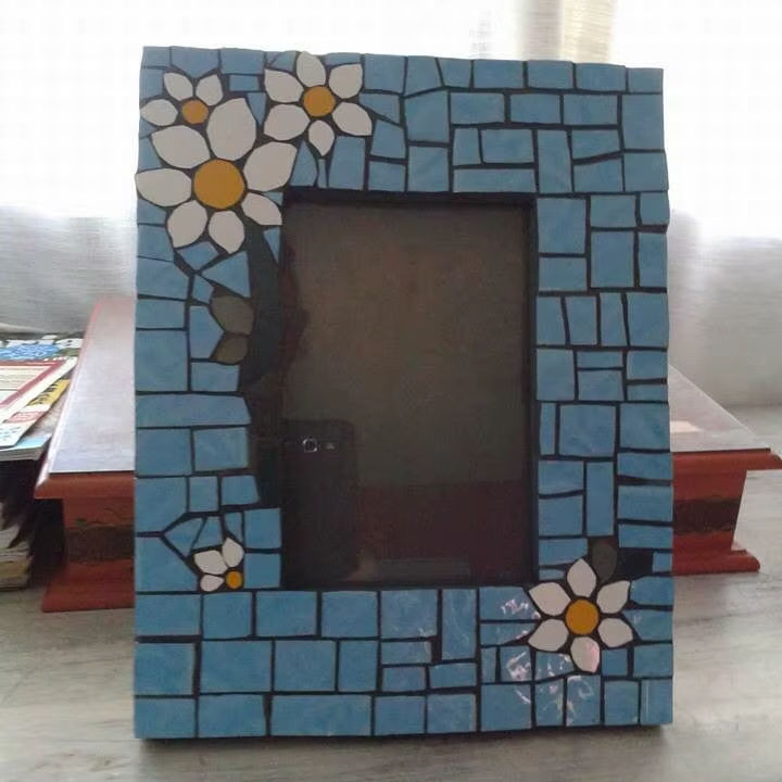 Cadre photo en résine mosaïque bleue fait main avec fleurs, cadre d'image de bureau, décoration intérieure, cadre rectangulaire pour table, cadre portrait