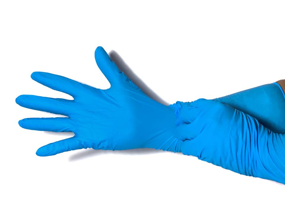 Blue Nitrile Long Cuff Gloves 16 Inch Disposable Medical Grade Powder Free Hand Protection Made in India