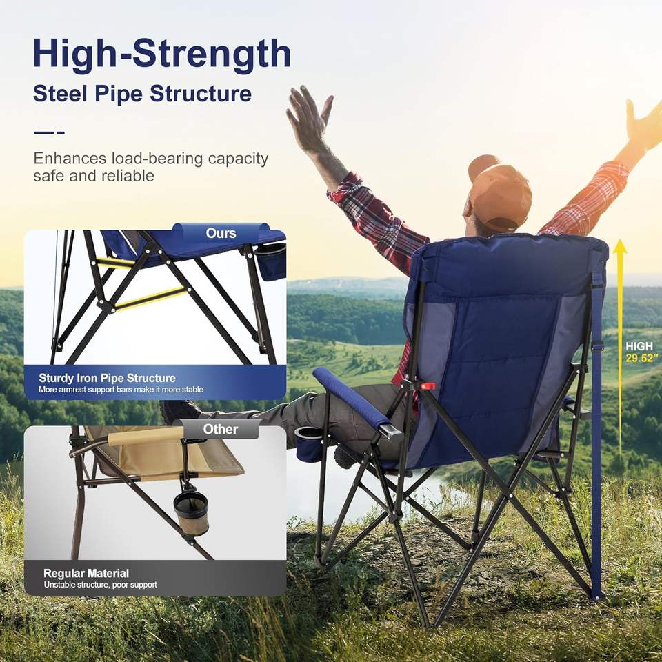 Blue Oversized 29.52\" High Back Camping Chair Heavy Duty Lawn Chair 500LBS Support Portable Collapsible Design Featuring Cup