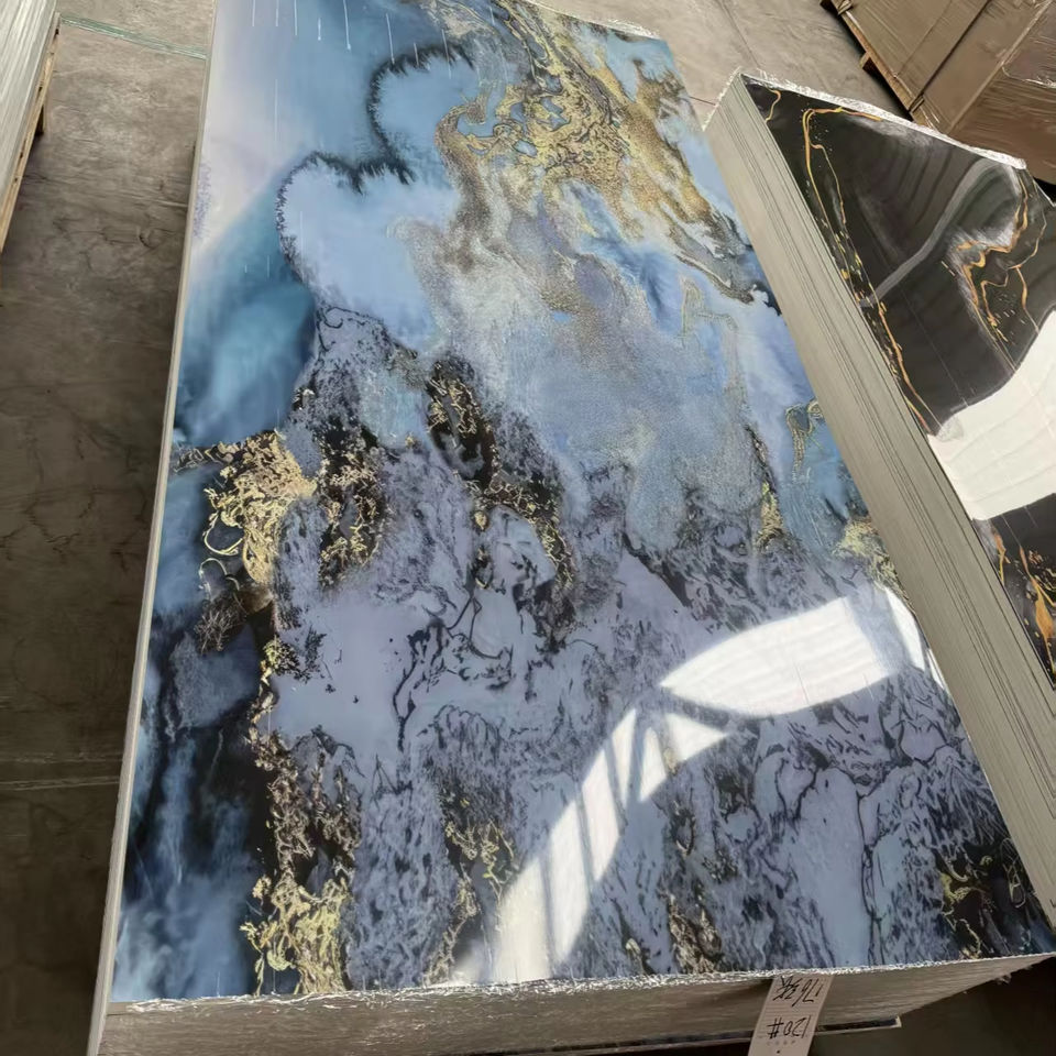 Panneau mural en PVC bleu, plaque en plastique haute brillance avec texture réaliste de marbre et d'ardoise, revêtement mural intérieur, prix d'usine