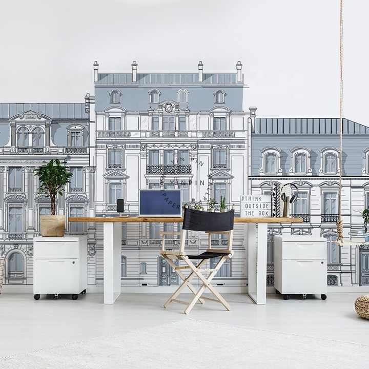 Papier adhésif d'architecture de paris bleu pour murs papier peint de style européen