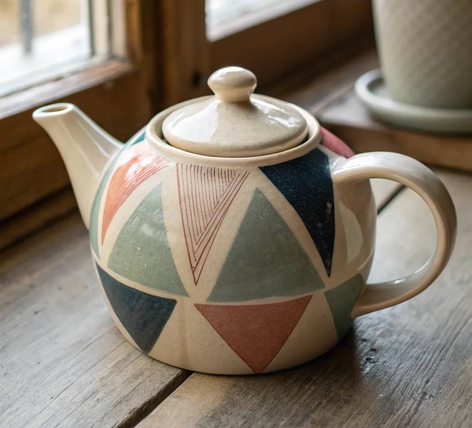 Théière à motif bleu avec bec verseur lisse, poignée confortable, corps isotherme, idéale pour servir le thé