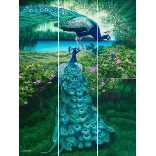 Paons bleus oiseau exotique carreaux de céramique murale jardin inspiré dosseret mural