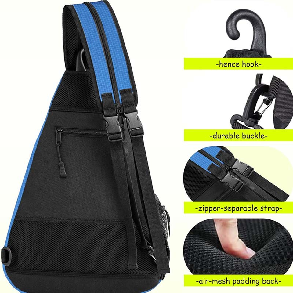 Sac à bandoulière pour pickleball bleu, grande capacité, raquettes/balles, dos en maille respirante, Bolso De Hombro, sac à bandoulière pour pickleball, sac de poitrine pour pickleball