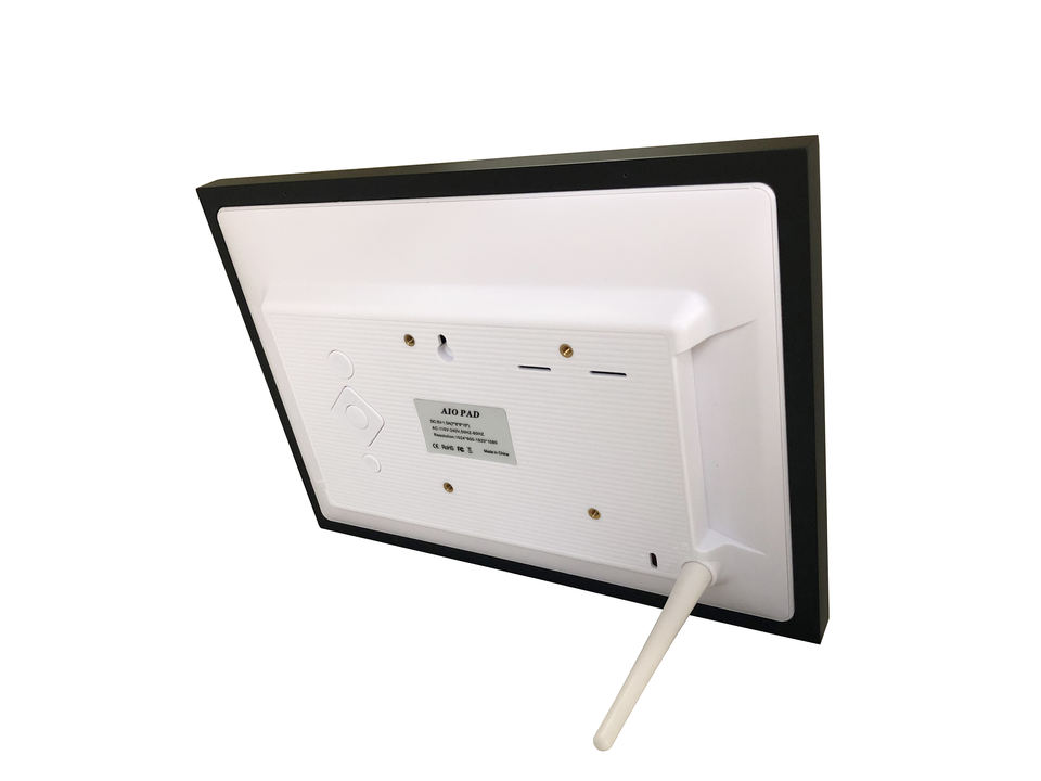 GUA Cadre photo numérique 10 pouces WF 103 TW, écran tactile, Wi‑Fi 2,4 GHz, USB 2.0/mini‑USB, PoE, emplacement carte SD, batterie, haut‑parleurs 2×2 W, ABS, CE/FCC/RoHS, adaptateurs UK/US/EU/AU