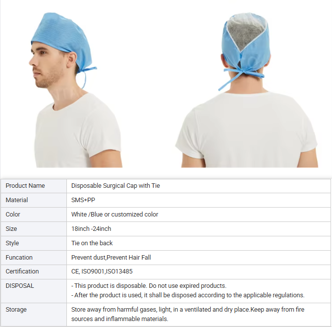Casquette chirurgicale d'hôpital jetable de SMS de PP non tissé bleu-rose avec le chapeau de soin du chirurgien d'agrafe flexible et l'équipement médical de couverture de chaussure