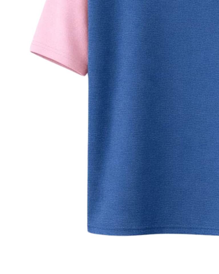T-shirt à manches raglan bleu rose pour homme, décontracté, été, col rond, respirant, mélange de coton, doux, confortable, léger, à porter au quotidien