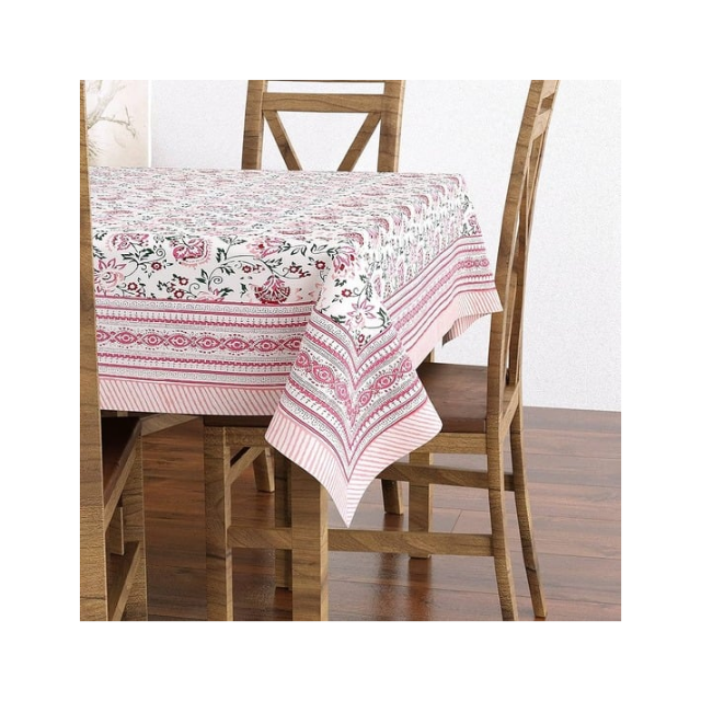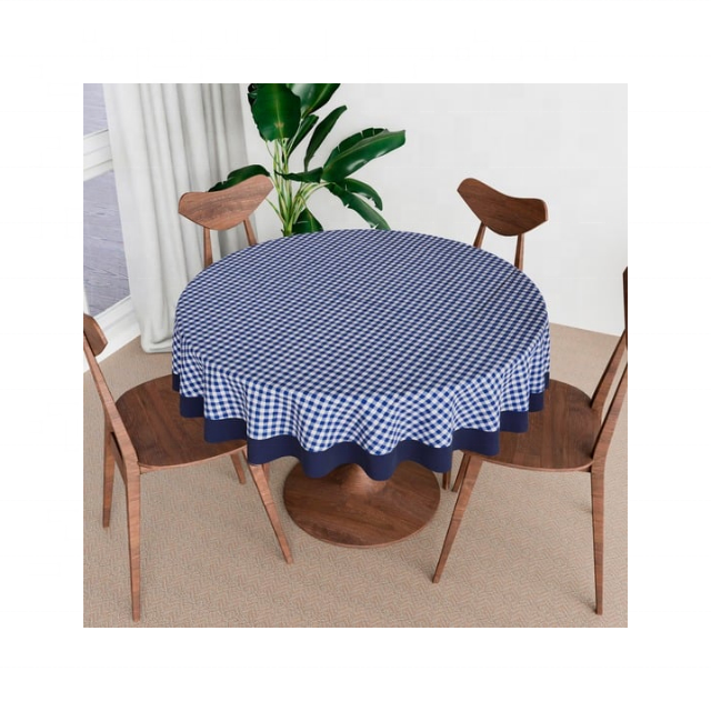 Blue Plaid Sustainable Cotton Printed Table Cloth 280 GSM Embroidered Detailing OEKO TEX Certified Fabric Easy Wash Table Decor