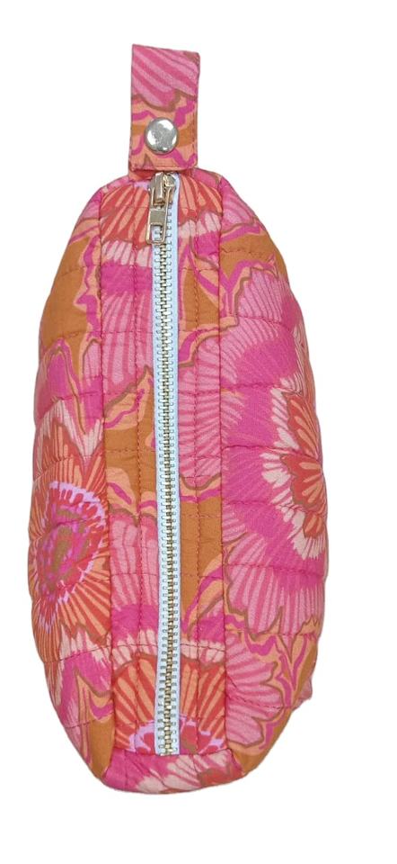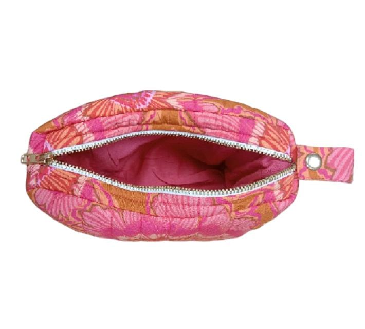 Mini pochette de maquillage imprimée bleue pour sac à doublure en coton brodé or pour dames avec fermeture à glissière