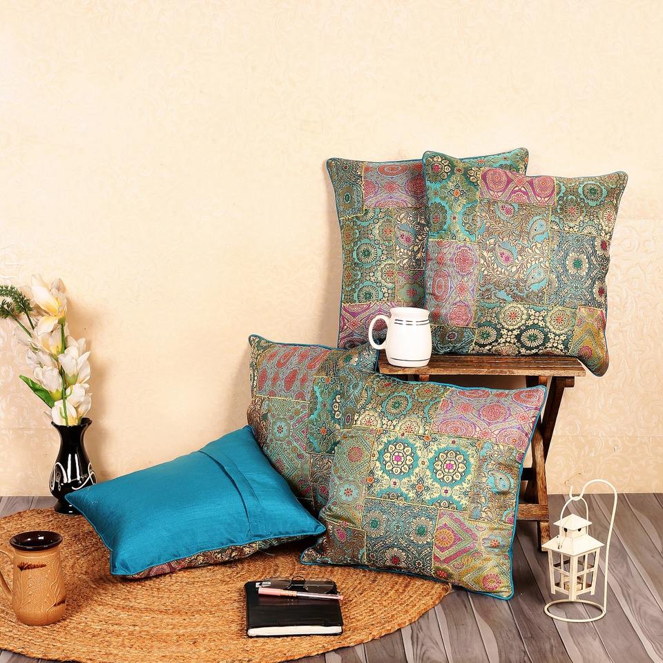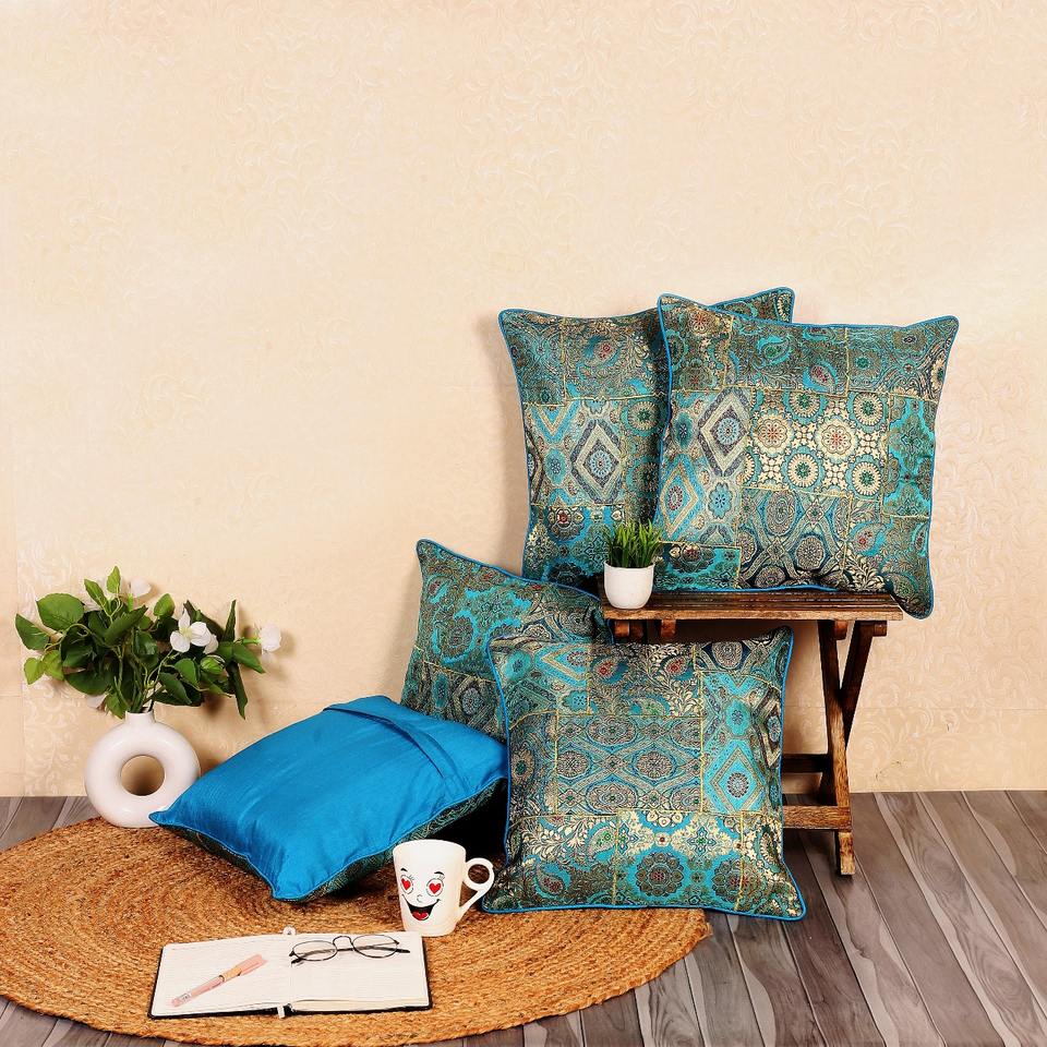 Housse de coussin carrée en brocart bleu Rama, motif végétal vintage de luxe, imprimé numérique, avec fermeture éclair, 45x45, en rayonne, pour hôpital