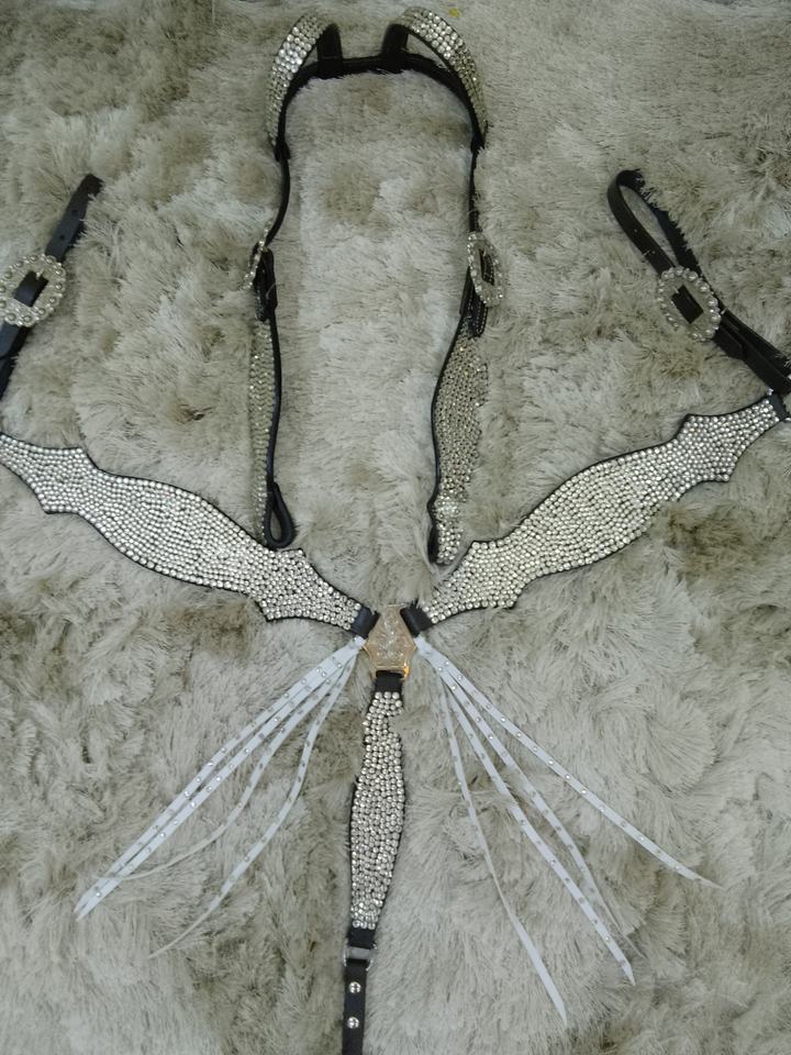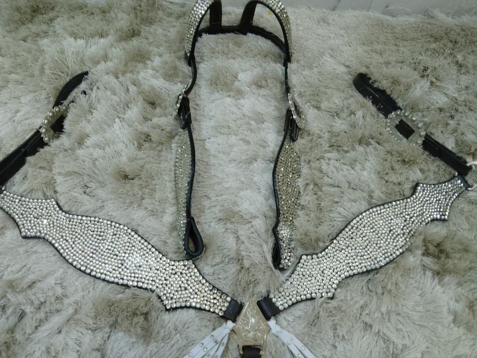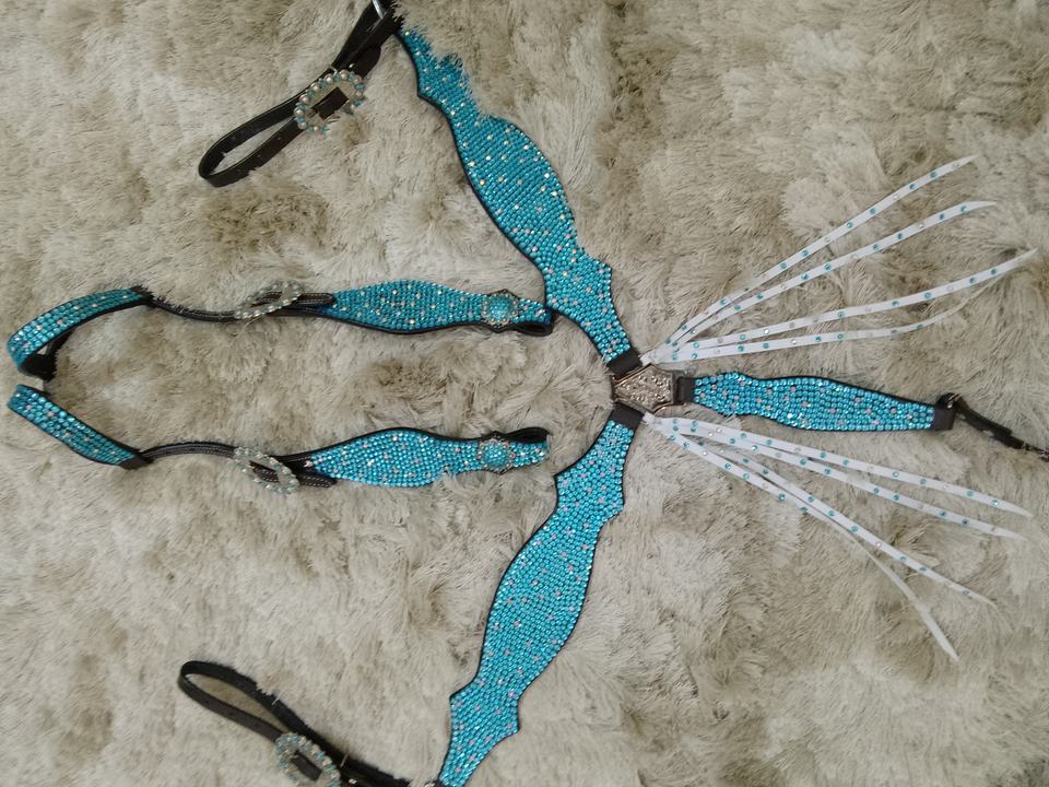 Bleu Strass Cristal Cheval Tack Ensemble Complet Headstall Plaque De Poitrine En Cuir Véritable Léger Saisonnier Cheval Débarrasser Équipements