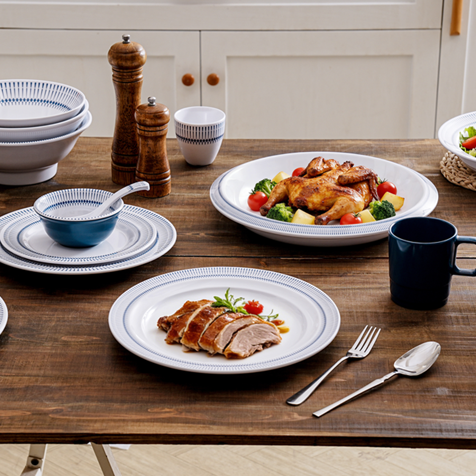 Bol rond en mélamine Blue Rhyme Secret de 6 pouces avec rebord inversé, compatible lave-vaisselle, micro-ondes, résistant à la décoloration, vaisselle écologique portable