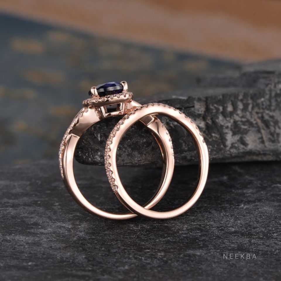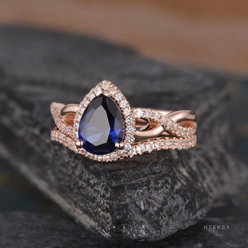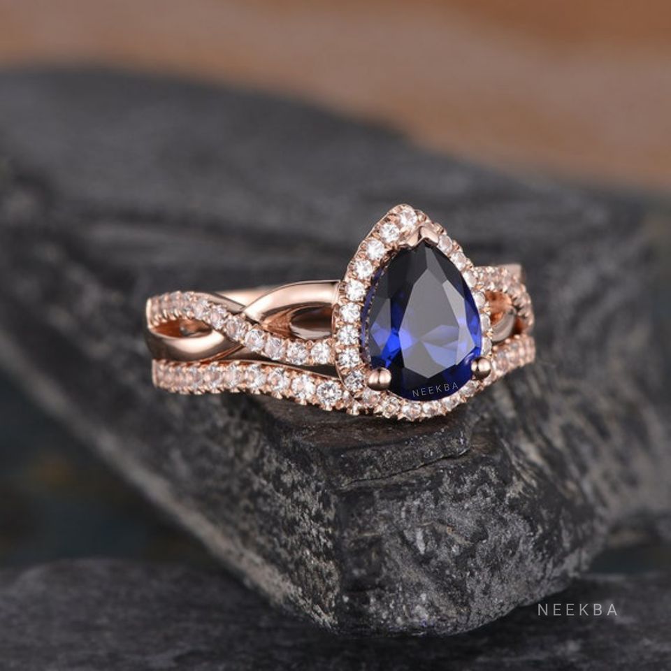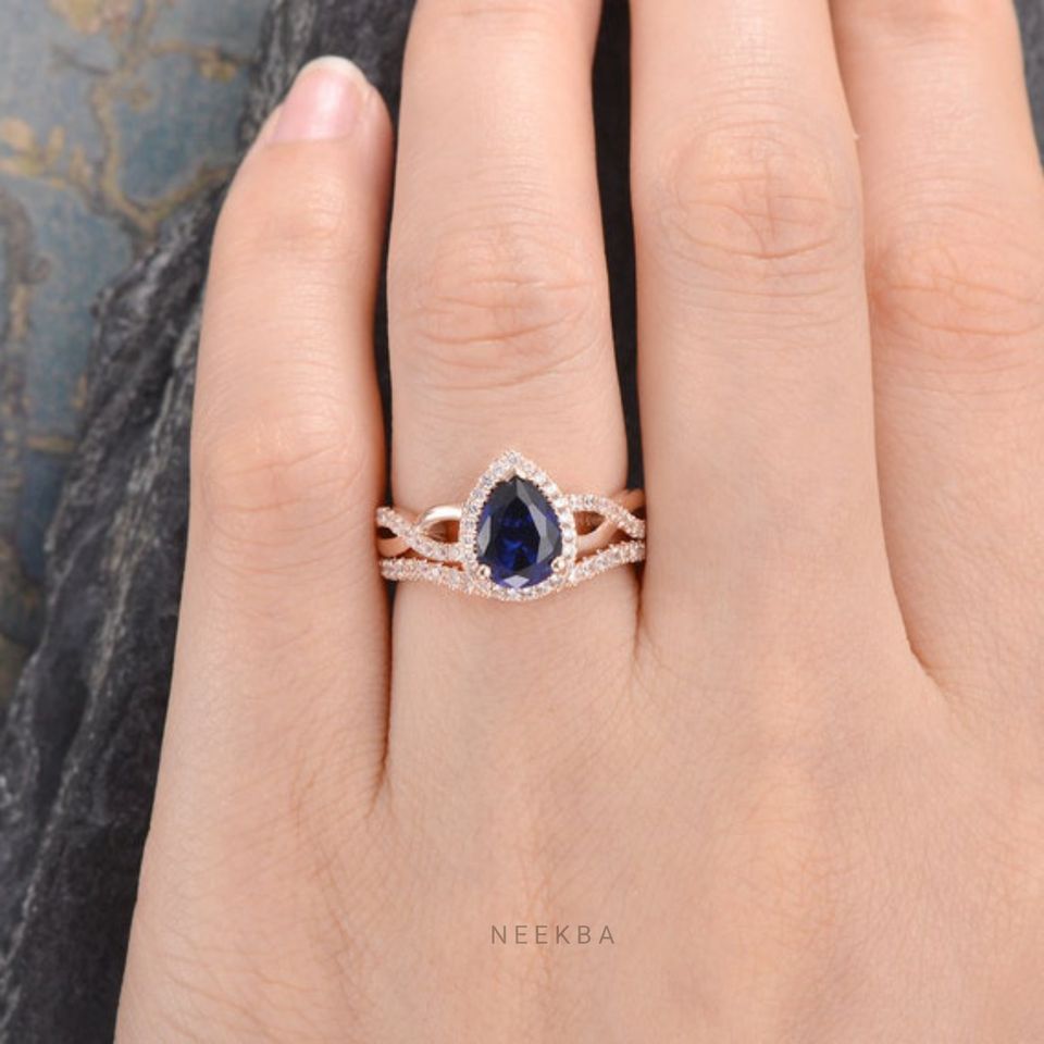 Ensemble de bague de mariage saphir bleuType d'anneaux