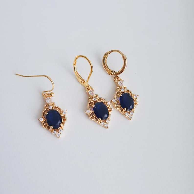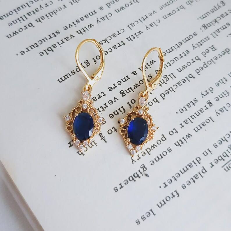 Keyword:Handmade Drop Earrings Blue Sapphire Stones