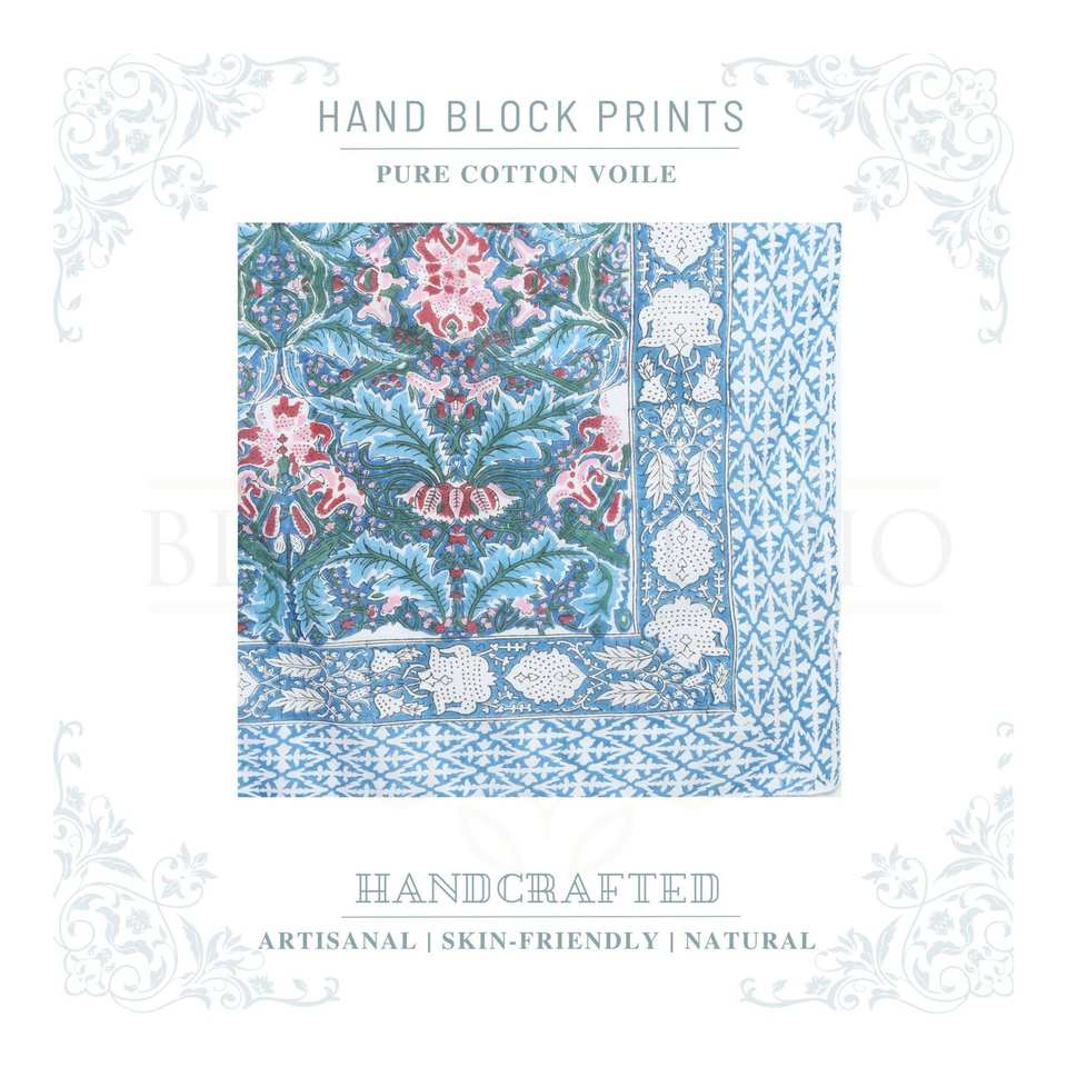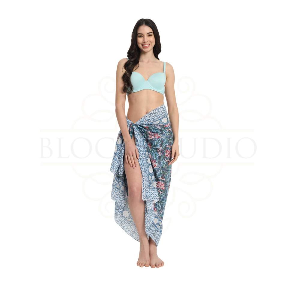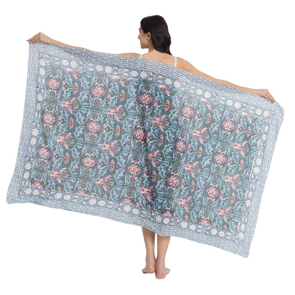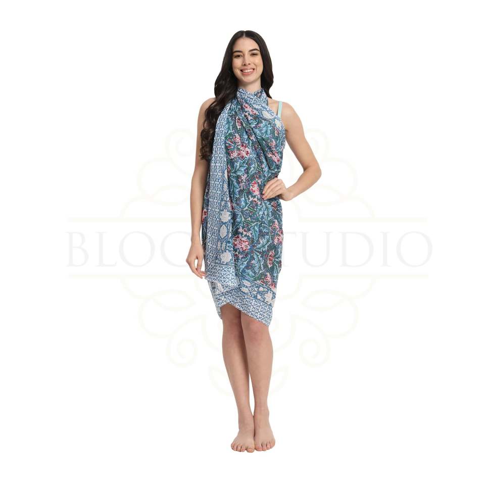 Sarong en coton imprimé à la main avec motif saphir bleu pour femmes, léger, idéal comme paréo de bikini, pour la plage et les vacances d'été