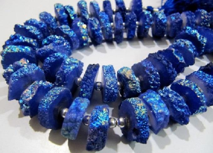 Perles en forme de disque de quartz solaire saphir bleu pierre de 4mm enduite d'une finition étincelante perles de 8 pouces de long brins taille 17-20mm