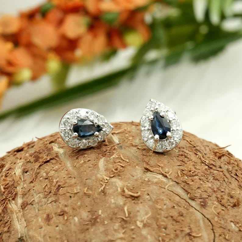 Keyword:Blue Sapphire Stud Earrings With Sparkling Blue Sapphire Stones