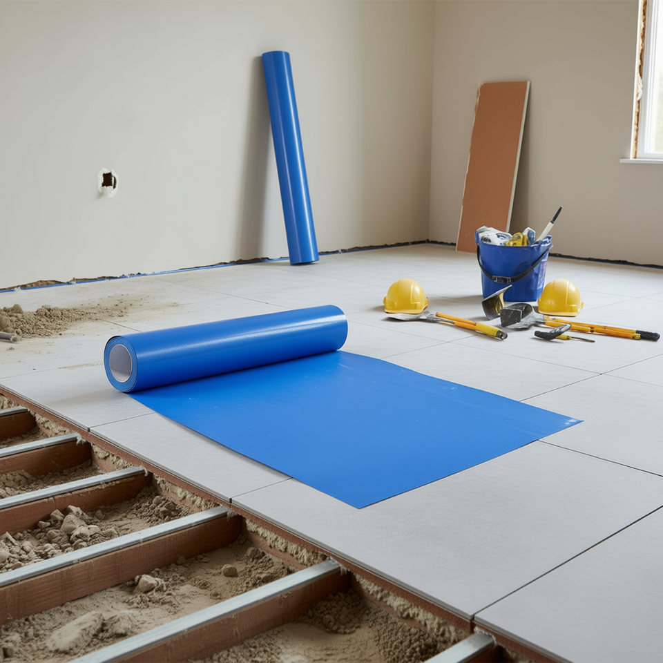 Film de protection auto-adhésif bleu pour tapis, 24 x 200 pieds, en polyéthylène, installation facile, protecteur de tapis de voiture, matériau de construction