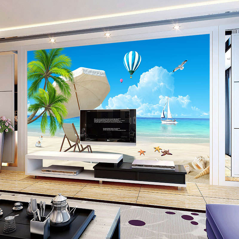 Bleu ciel et vue sur la mer paysage Tv fond mur papier peint salon canapé mer plage murale bleu ciel plage 8d papier peint