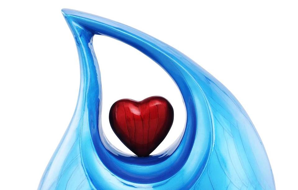 Adult Style Tear Drop Cremation Urn Cherry Red Heart Decorative Funeral Burial Urn for Human Pets Ashes Teardrop Metal Urns Jars