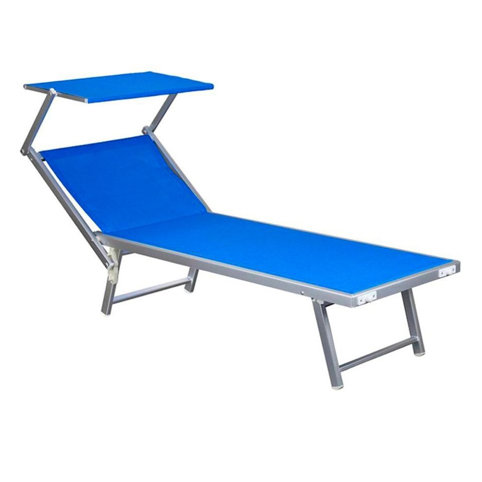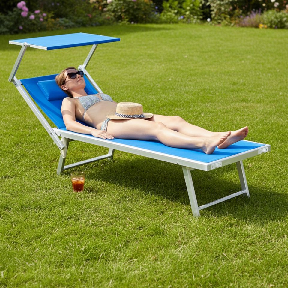 Blue Textilene Sun Lounger with Aluminum Frame 185x70x40 cm Couch with Sunshade COUCH with SUNSHADE BLUE 185x70x40 cm ALUMINUM