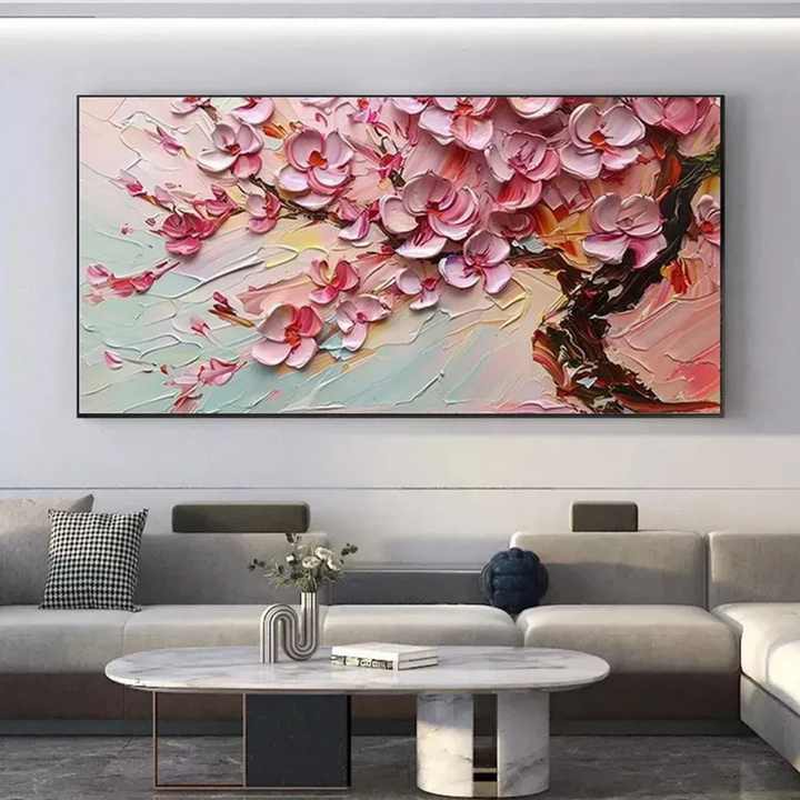Peinture abstraite florale texturée bleue, peinte à la main à l'huile sur toile, grande œuvre d'art murale, décoration intérieure, arts décoratifs
