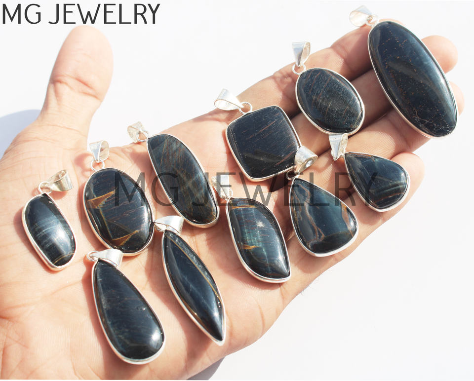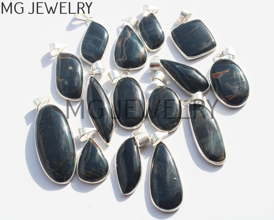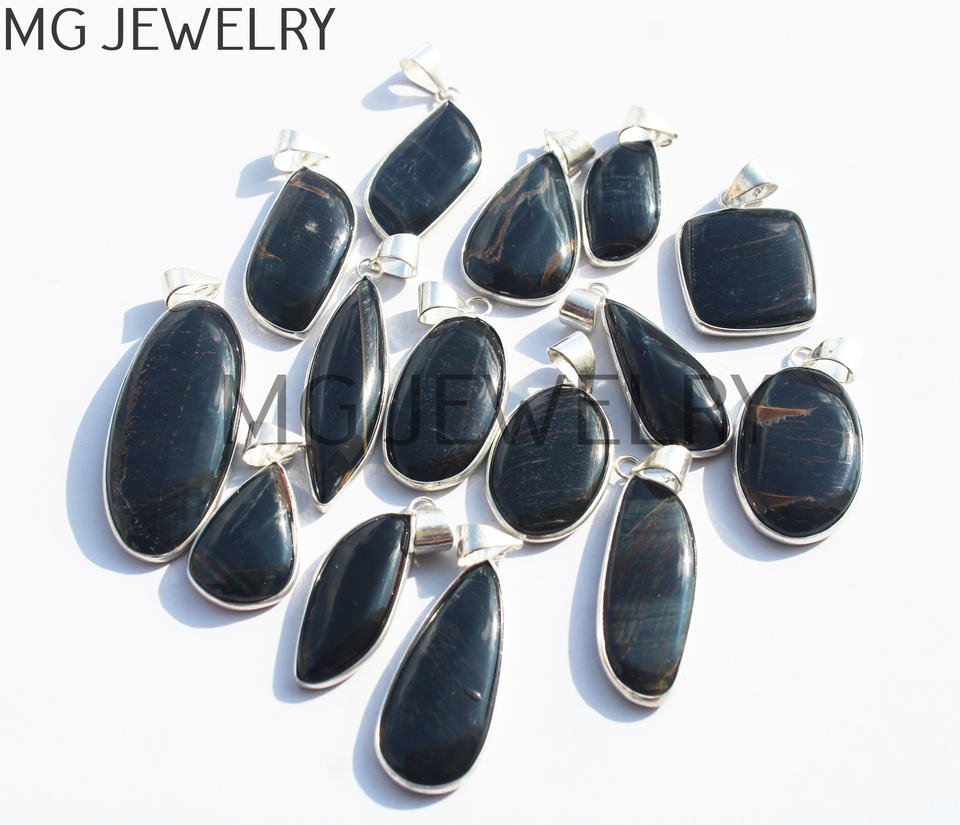 Product Name:Blue Tiger Eye Bezel Silver Plated Pendants