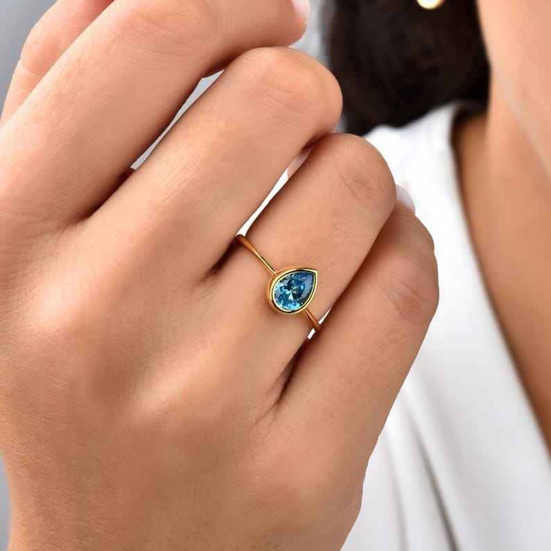 Topaze bleue argent plaqué laiton anneaux faits à la main bijoux fins avec Flash or Vermeil fournisseurs en gros pour les anneaux